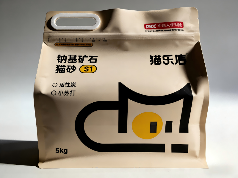 Estructura de la bolsa: La estructura del sello de ocho lados proporciona una forma vertical y estable, perfecta para exhibir en estantes. La cremallera resellable y la empuñadura de plástico reforzado permiten un fácil manejo y un almacenamiento seguro de 5 kg de arena para gatos.